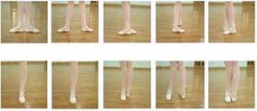 四位:类似于五位脚,只是前后脚间有一脚的距离,重心在中间,前脚跟与后脚趾关节成一条线;