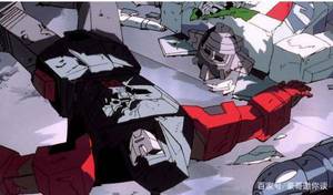 有意思的是,和汽车人领袖存在过渡一样,霸天虎那边也有个短暂的过渡,红蜘蛛把负伤的威震天给扔了,然后当了几秒钟老大就被转型成功的惊破天给毁了,可怜的小红还不如通老二。