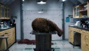 东西摄到身体里面,开始了变异的生活,然后拉出了很多小虫虫,然后这些小虫虫又去感染别人,只要有洞就可以钻进去。