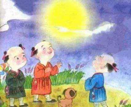 “呼”、“疑”这两个动词,传达出儿童的天真烂漫之态。这四句诗,看似信手写来,却是情采俱佳。然后,又写月亮的升起:“仙人垂两足,桂树何团团?白兔捣药成,问言与谁餐?”古代神话说,月中有仙人、桂树、白兔。