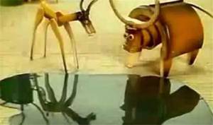 因为是竹偶动画,几根竹片拼成的动物,在形象上达不到逼真,只能算是神似,但是动物的神情却表现十分到位。尤其是鹿和牛因为喝水产生矛盾的过程,经过镜头的运用和配乐的烘托,完全表现出了鹿和牛冲突时产生的微妙心理历程。这一段落堪称经典。