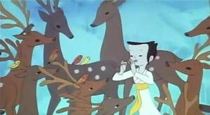 这部动画和《九色鹿》一样,吸取了敦煌壁画的特色,画面精美,线条简练飘逸。