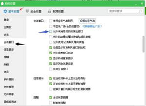 3、在会话窗口右边找到【允许来消息时自动弹出窗口】,去掉前面框框的勾。关闭窗口完成操作。