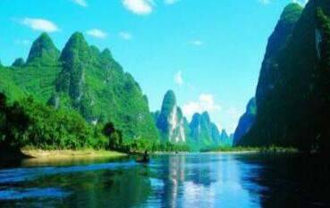 我看见过波澜壮阔的大海,观赏过水平如镜的西湖,却从没看见过漓江这样的水。漓江的水真静啊,静得让你感觉不到它在流动;漓江的水真清啊,清得可以看见江底的沙石;漓江的水真绿啊,绿得仿佛那是一块无瑕的翡翠。船桨激起微波,扩散出一道道水纹,才让你感觉到,船在前进,岸在后移。