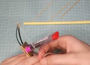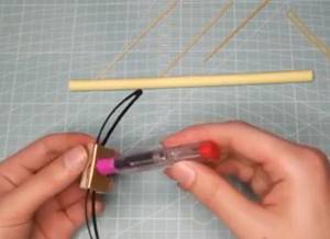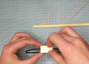 在把雪糕的棒子两端削除两个豁口,方便皮筋受力