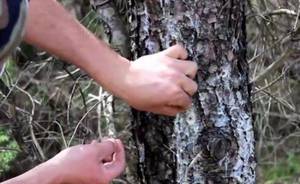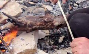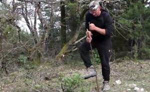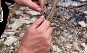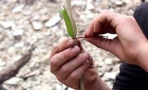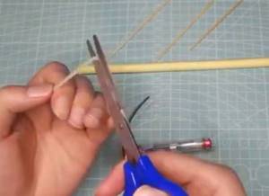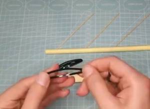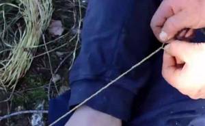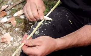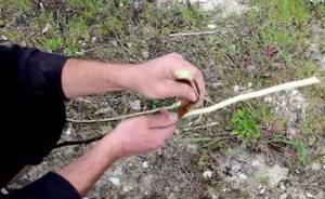 9、找一根韧性较好的木棍,在两头刻上槽。