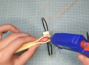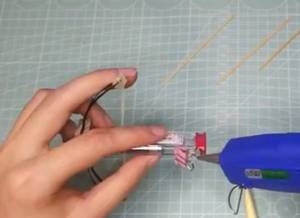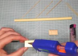 2、第二步,在木块上使用胶枪涂上胶,如下图所示。