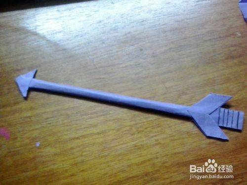 12、最后,把四部分的图形组装在一起,并用固体胶固定住,然后再在尾巴长方形处花上线条,一支弓箭就大功告成了。