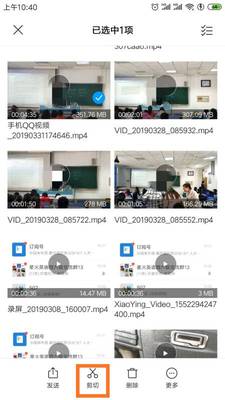 5、然后屏幕下方会弹出四个选项,选择“剪切”