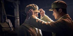 在乱石滩隐蔽时,伍万里紧贴着腐烂的尸体,还目睹了战友张小山在敌机扫射下被炸成碎片和血雾。为了加强“沉浸感”,林超贤还专门设计了一段在木屋内的战斗,伍万里和伍千里等人与敌军展开肉搏,每一下打斗都是用尽全力的致命一击。