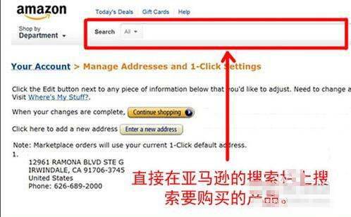 1.亚马逊网页上有搜索栏,只要输入产品名称、型号或品牌就可以找到要购买的物品。或者直接输入产品型号。