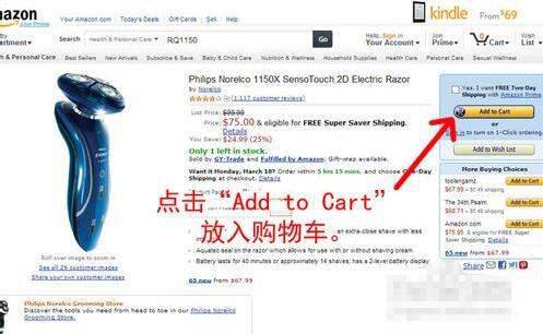 3.点击“Add to Cart”把物品直接放到购物车内。