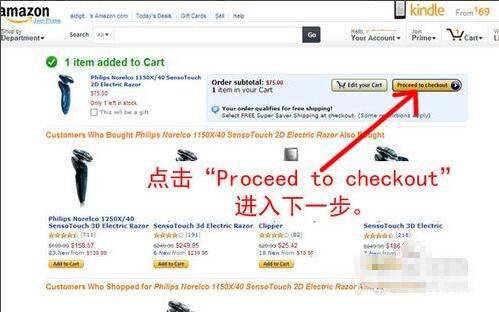 4.如果还有其他要购买的物品,可以重复以上步骤搜索就行。购买完毕后可以点击“Proceed to checkout”。