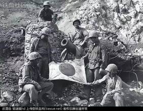 图:取得最终胜利的美军,在展示缴获的日本国旗,一面日本国旗战后可以去换取一瓶威士忌。人数上占据巨大优势的美军,最终还是取得了胜利,战争极其艰难惨烈,有时候美军一天只能推进5米。