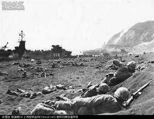 图:作战的士兵,尸横遍野,场景极其惨烈。美军伤亡如此惨烈,有很大的原因是因为他们的情报工作没有做好,最初他们只以为岛上有1万日军,这和实际敌军数量偏差太大。