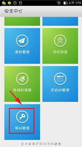 1、首先进入【安全中心】,点击【授权管理】。