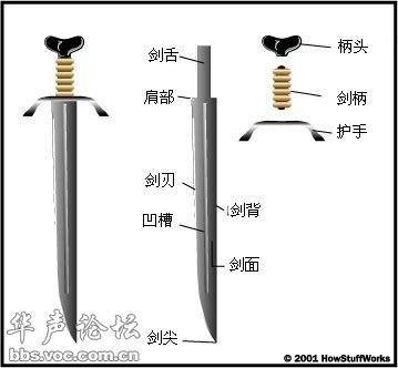 一、一把剑的主要组成部分包括: