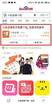 1、在百度搜索里面搜索关键词斗鱼直播并下载安装完成,如下图。