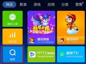 8、安装好当贝市场之后,打开当贝市场首页,移动遥控到左下角的【搜索】功能