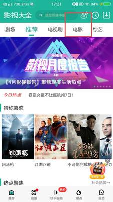 第五步、进入360影视大全的首页,点击电影。