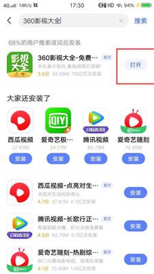 可以在手机应用商店安装其中一个“360影视大全”APP,这个APP里面所有的电影都是可以免费观看的,可以按照以下步骤操作。