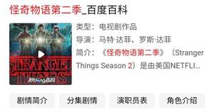 (Stranger Things Season 2)是由美国NETFLIX出品的科幻惊悚电视局剧。由马特·达菲和罗斯·达菲编剧并执导,大卫·哈伯、薇诺娜·瑞德、米莉·博比·布朗、菲恩·伍法德、诺亚·施纳普、伽塔·马塔拉佐、凯莱布·麦克劳克林、娜塔丽雅·戴尔、等主演。