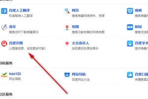 3、打开页面后下拉功能表,找到百度识图,然后点击打开。