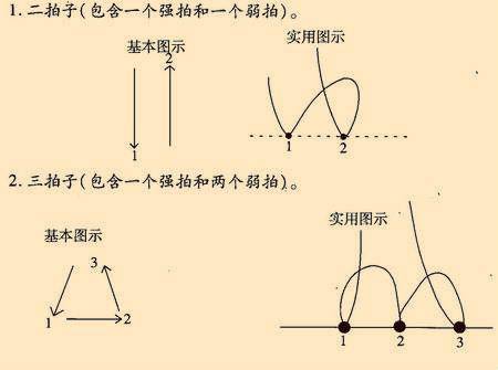 2、打节拍的基本方法:指挥的时候两手上不能超过肩,下不能低过腰。节拍的基本手势是:下左右上。