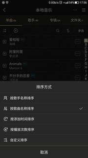 这时右边就会出现按文件名、歌手、添加时间等排序