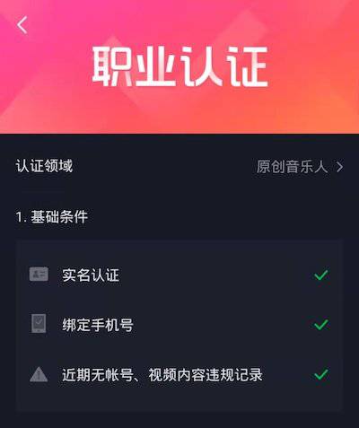 认证抖音音乐人,需满足的条件1.抖音粉丝数量大于等于10000;2.抖音绑定手机号,已完成身份证实名认证。