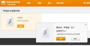 2.在网页右上角的搜索框内填入“声海盗”回车,点“安装>安装”