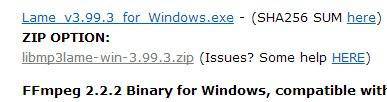 8.如果出现“定位Lame”,点“下载>LAME download page>Windows downloads>libmp3lame-win-3.99.3.zip”