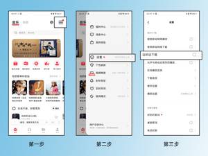 进入i音乐--点击右上角“≡”图标--设置--可开启“边听边下载”。