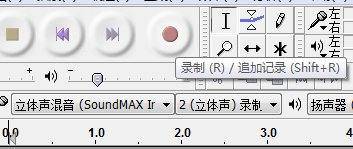 3.打开Audacity程序,点上方红色圆形的按钮开始内录