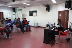 3、歌唱中的咬字和吐字(教师用标准普通话教学,教学员在歌唱发音及日常说话交流时正确的咬字吐字、归韵收声,使学员的普通话更加标准,底气十足);