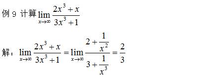 对于极限是“”型,不能直接用极限的商的运算法则,必须先将分母和分子同时除以一个适当的无穷大量x。