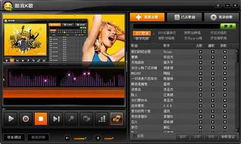 打开酷我K歌后,切换到“我要点歌”窗口。为了方便用户快速找到最新最流行的KTV歌曲,还专门提供了“KTV点播排行”、“新歌抢先唱”和“歌手列表”等分类,从中就可以快速找到最热门的点唱曲目了。