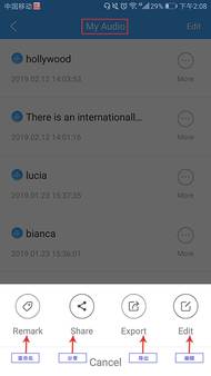 5、在“My Audio”即我的音频页面导出或分享你的MP3文件