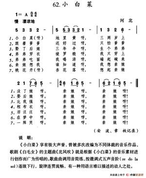 《小白菜》是一首谣唱歌曲,属于河北民歌的小调体裁。