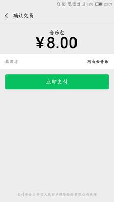 7、最后在微信支付里点击“立即支付”就可以开通网易云音乐包啦,就可以下载付费歌曲了。