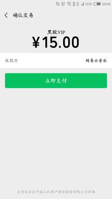 4、页面会自动跳转至微信支付,然后点击“立即支付”就可以开通黑胶VIP啦。