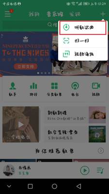 2.点击右上方+号,点击其中的“听歌识曲”;