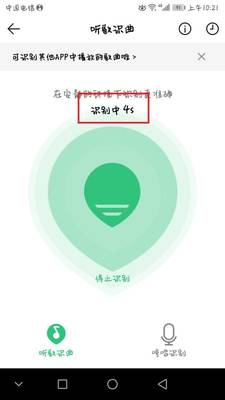 6.另外一个小技巧,有时候识别外面的歌曲时,环境比较嘈杂,可能没能识别结果。然后外面的音乐又换了或者停了。这时候打开识别历史功能,再识别一次也许就能找到心仪的歌曲了。