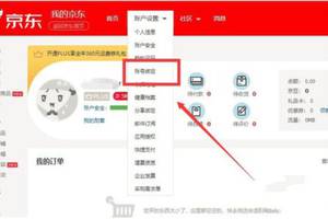 4、进入我的京东后如下图所示,把鼠标放置在账户设置,放置后出现菜单栏,找到账号绑定入口即可。