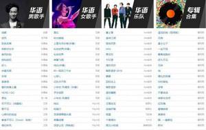 banner的正下方是一些热门歌曲,如花粥的《出山》、陈雪凝的《绿色》、黑龙的《38度6》都在热歌榜中。另外话可以按“华语男歌手”、“华语女歌手”、“华语乐队”、“专辑合集”、“欧美歌手”、“日韩歌手”等分类来检索需要的音乐。