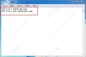 1、首先安装原程序软件,根据安装向导一步步安装,直至软件安装完成。接下来对bandicam软件进行破解,破解之前请将以下地址添加到Host文件中(C:\Windows\System32\drivers\etc)