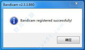 6、再次打开bandicam(班迪录屏)可以看到已经注册: