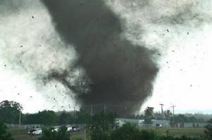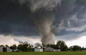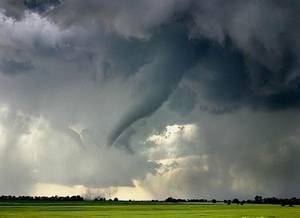 当天气恶劣起大风同时伴有雷雨时,便会很容易产生龙卷风。龙卷风是地球大气云层中雷暴天气的产物,简单的说就是雷暴巨大能量中的一小部分在很一个面积较小的区域内集中爆发释放的一种形式。龙卷风非常的强烈而且范围小,除了在雷暴天气下会产生,在天气状况极不稳定的情况下由于空气强烈的对流运动也会造成龙卷风的产生。由雷暴云底位置延伸到地面的漏斗状龙卷风的风力可达到12级以上,最大可以达到100米每秒以上,同时还伴有雷雨,有时也会有冰雹。