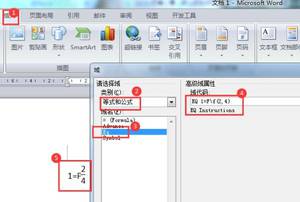 2、选择“等式和公式”,找到“EQ”,制作节拍输入“EQ 1=F\f(2,4)”,点击“确定”即可。