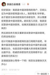 第一步、在电脑、手机任意浏览器中,输入中国诗歌网网址 www.zgshige.com : 第二步、已注册的就登陆了发言、发诗吧,没账号的当然是点注册: 第三步、登陆界面长这样: 第四步:初来乍到,注册会员为先,然后就能发表评论和感想咯: 第五步、要发表诗歌,就申请认证诗人,个人信息我们会保密哦: 第六步、成了认证诗人,在中国诗歌网任意页面,猛戳“发表”按钮就能写诗啦!中国诗歌网打不开了,为什么?那么多作品发在上面,为什么没有预告就关闭?
